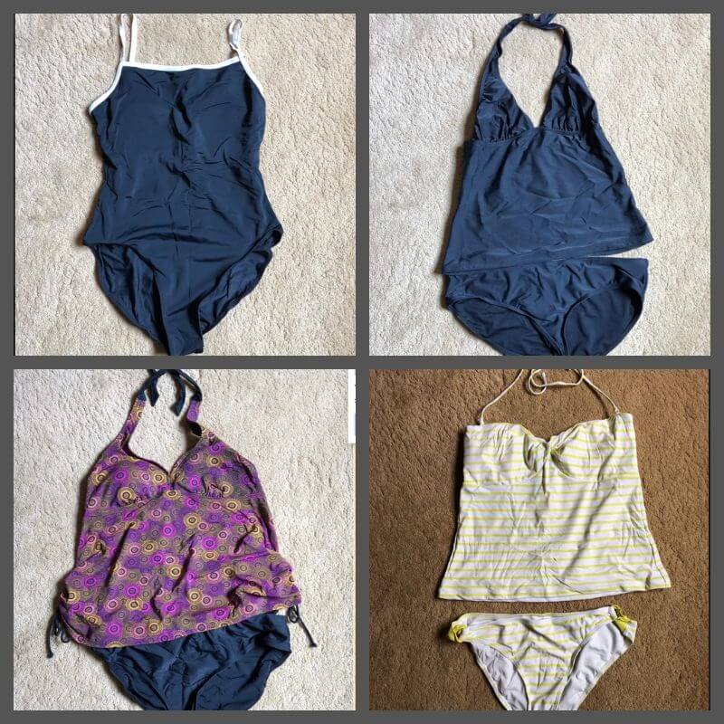 Before I got pregnant, I wore simple one piece bathing suits made by my favorite company – Speedo. [Top Left] These swimsuits were simple, withstood rinsing several times a week, and fit me perfectly.